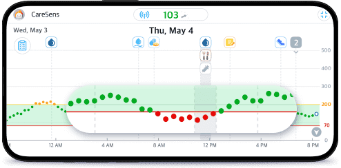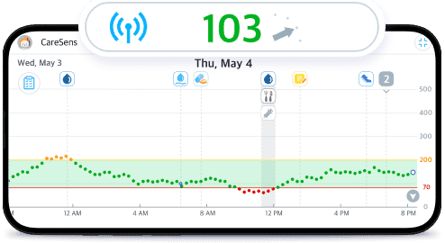 CareSens Air uygulamasıyla glikoz seviyenizi gerçek zamanlı olarak yönetmeye başlayın.